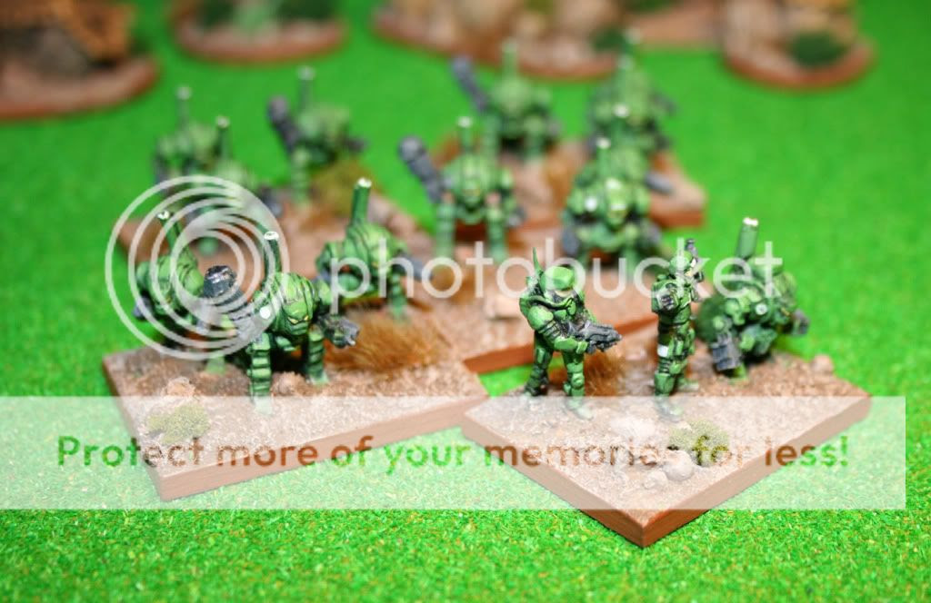 The Communications Specialist is a slightly converted ARC Droptrooper from Critical Mass while the officer is standard from the same range. The helmet has been modified on the comms trooper,and a larger backpack added using greenstuff.
